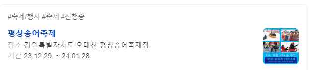 | 축제기간 : 2024년 1월 6일(토) ~ 1월 28일(일) / 23일간 * 선등거리 : 2023. 12. 23(토) ~2024. 2. 12(월) |