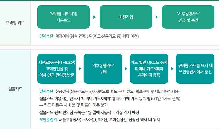대중교통을 지속적으로 이용하는 고객이라면 꼭 기후동행카드 구매 및 모바일카드를 신청하셔서 다 향한 혜택을 받으셨으면 합니다. "지속적인 개선·보완을 통해 편의성을 높이고, 더 나아가 수도권 통합환승제에 이어 기후동행카드가 시민 생활 속에 정착할 수 있도록 총력을 기울이겠다고 합니다.