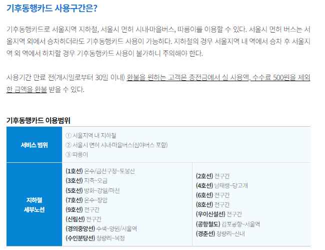 기후동행카드 이용가능한 범위