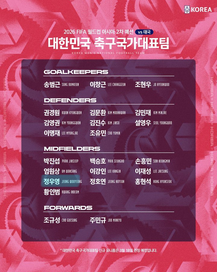 황선홍 임시 감독이 지휘하는 대한민국 축구 국가대표팀은 3월 26일 오후 9시 30분 태국 방콕에 위치한 라자망갈라 국립경기장에서 열리는 북중미 월드컵 아시아 지역 2차 예선 C조 4차전에서 태국과 맞대결 경기를 합니다.태국과 1차전 때 1:1일 무승부로 경기가 끈나시 너무나 아쉬운 경기 결과였지만 이번 원정경기는 대한민국이 어떤 반전을 보여줄지 기대가 됩니다.