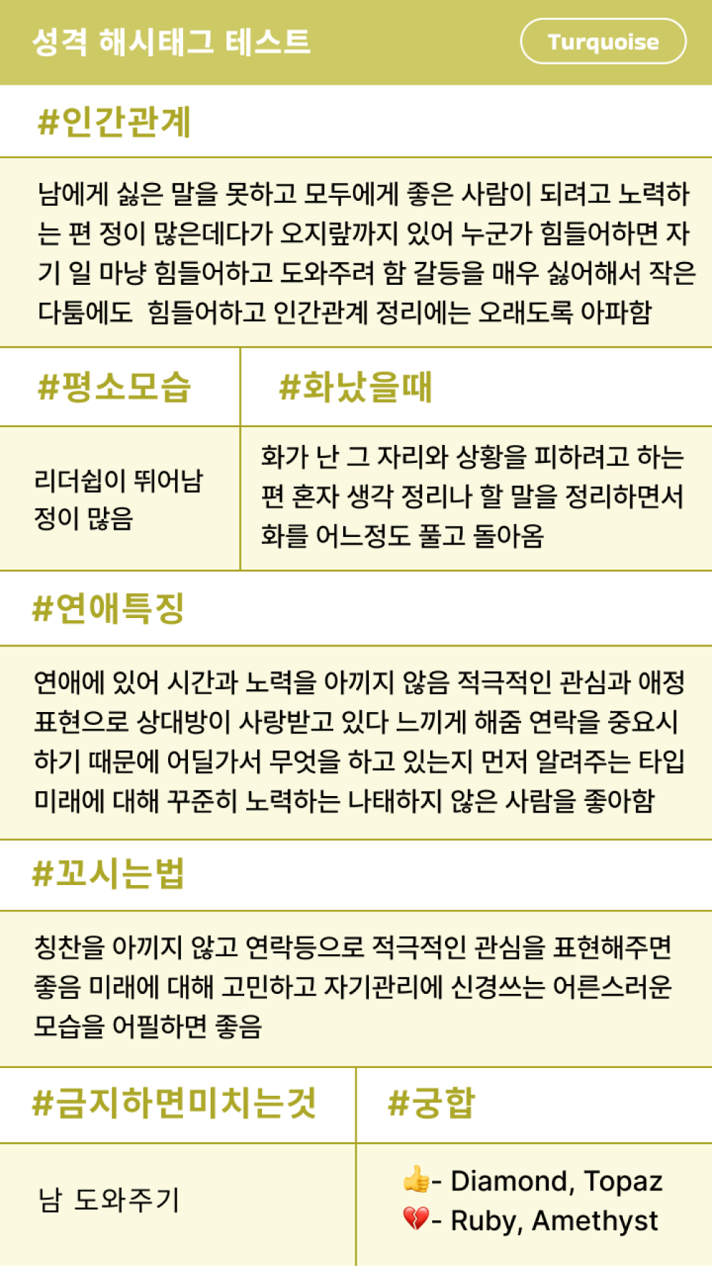 2. 성격 해시태그 테스트 결과 16가지 유형