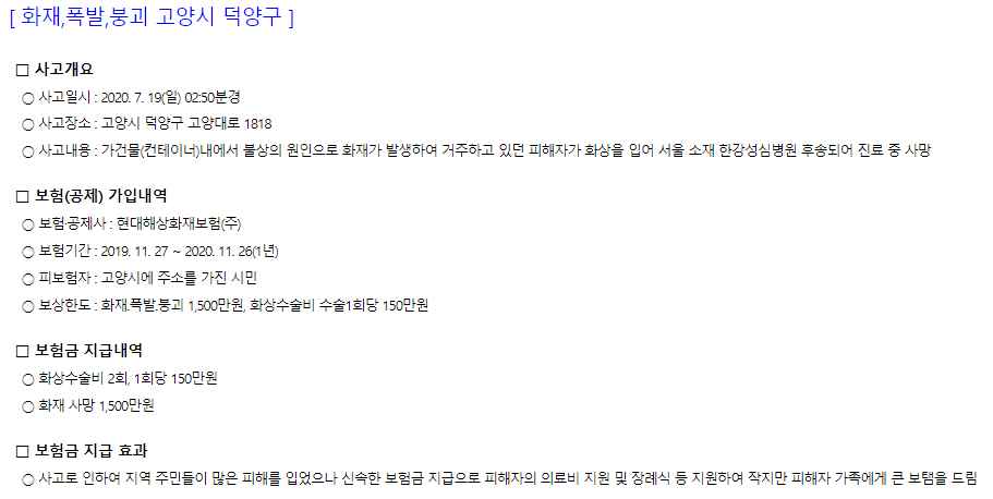 전국적으로 지금까지 안전사고가 나서 시민안전보험 보상사례에 대해서 알아보겠습니다.