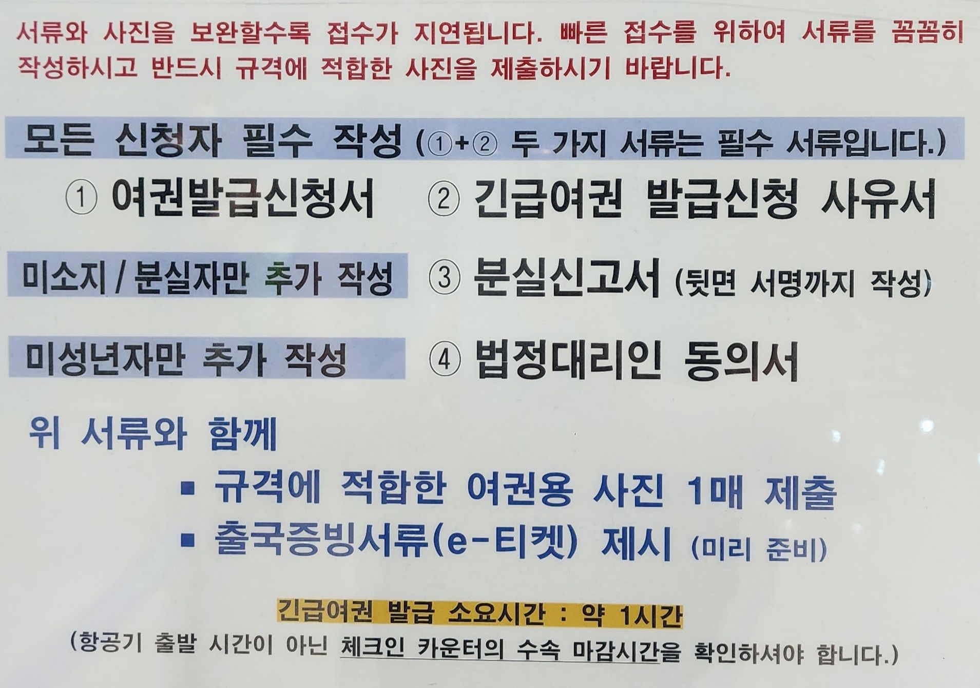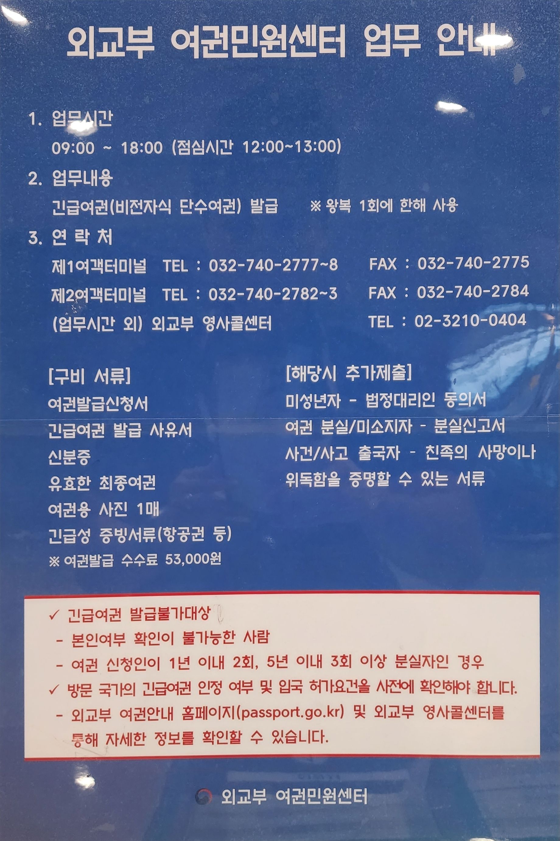 외교부에 따르면 여권을 새로 발급 받을 수 없는 긴급한 사람은 누구나 발급 대상자로 지정하고 있어 필요시 인천공항에서 신청을 하시면 됩니다. 하지만 긴급여권은 유효기간 1년의 비전자 단수여권입니다.