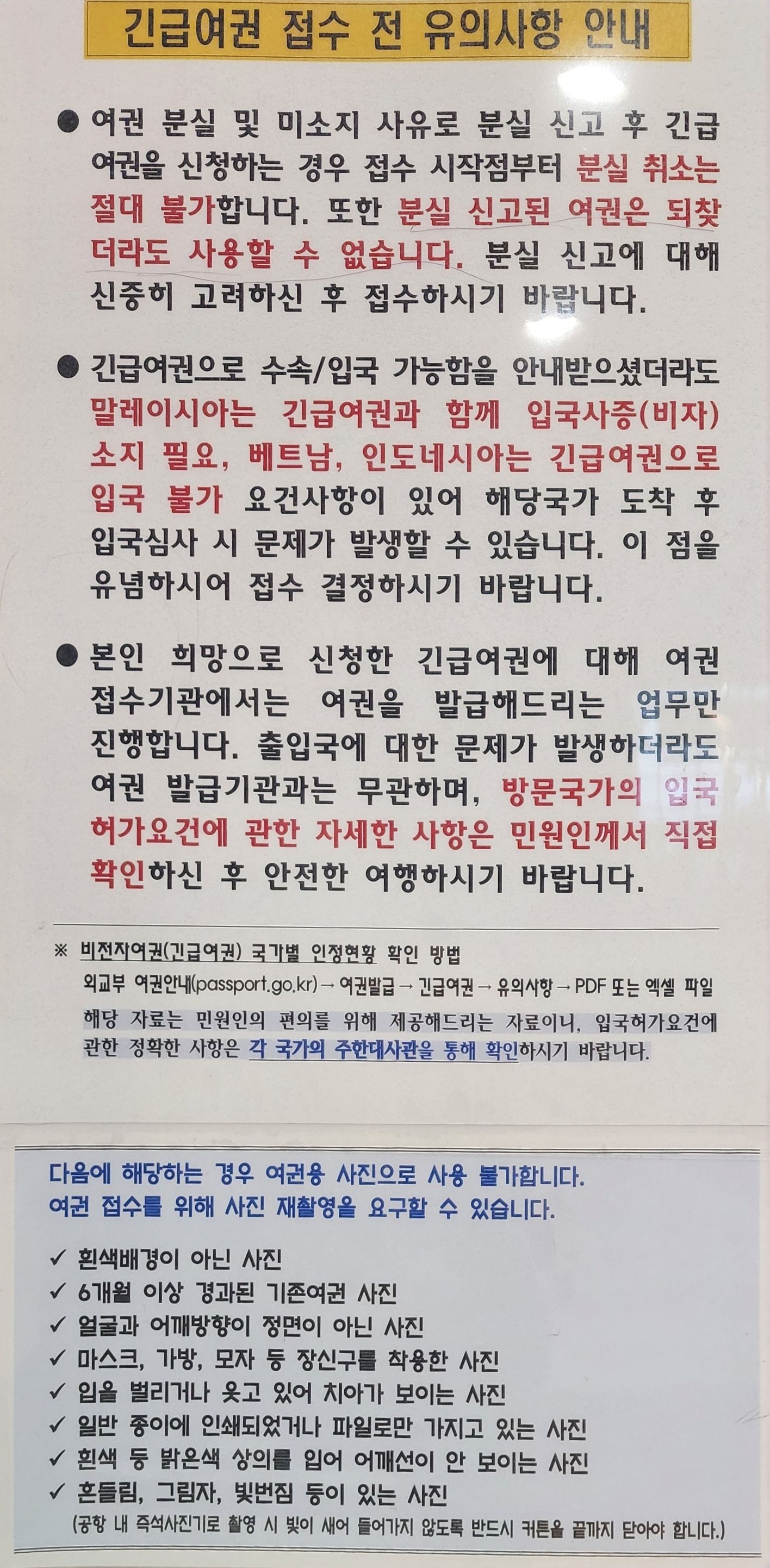 *방문 국가의 긴급여권 인정 여부 및 입국 허가요건을 사전에 확인해야 합니다.