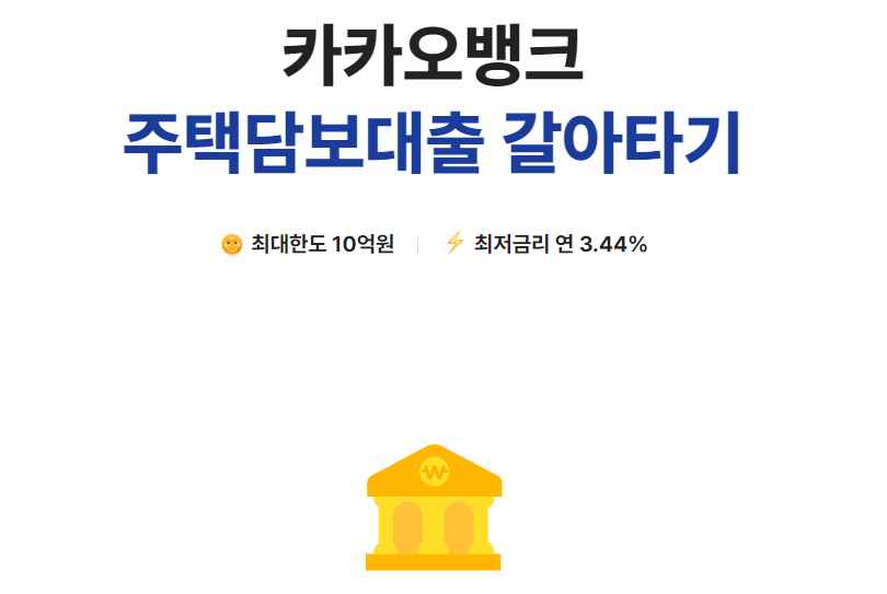 주택담보대출 갈아타기 서비스는 다른 금융사 주택담보대출을 보유한 고객이 더 나은 조건의 주택담보대출로 갈아탈 수 있는 서비스입니다. 금융회사들도 고객 확보를 위해 주담대·전세대출 갈아타기 서비스 개시 일정에 맞추어 금리를 낮춘 다양한 비대면 신규 대출 상품을 출시하고 있습니다. 카카오뱅크와 카카오페이 주택담보대출 갈아타기에 대해서 자세히 알아보겠습니다.