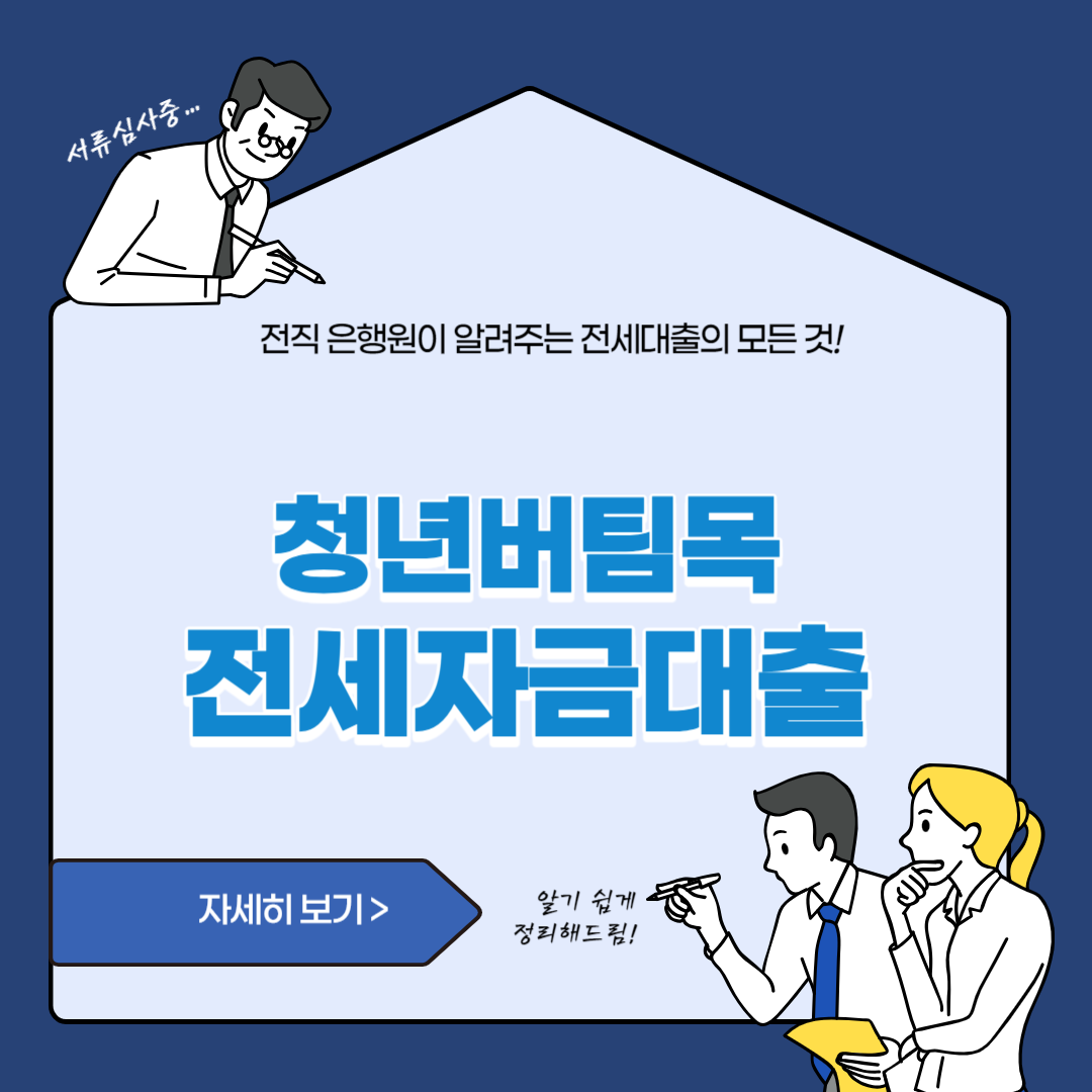 오늘은 전세자금이 부족한 청년들에게 필요한 청년전용 버팀목 전세자금대출을 소개하고자 합니다.관심있는 분들에게 빠르게 알아보겠습니다.