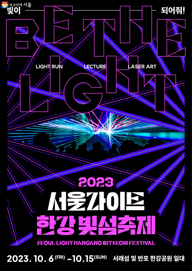 레이저 아트(Laser Art)에서는 ‘Be the Light’를 주제로 빛을 통한 영감, 희망, 기쁨, 치유, 아름다움을 구현하는 다양한 빛의 역동성을 엿볼 수 있는 전시를 축제 기간 동안 오후 7시부터 10시 30분까지 서래섬 전역에서 선보인다.