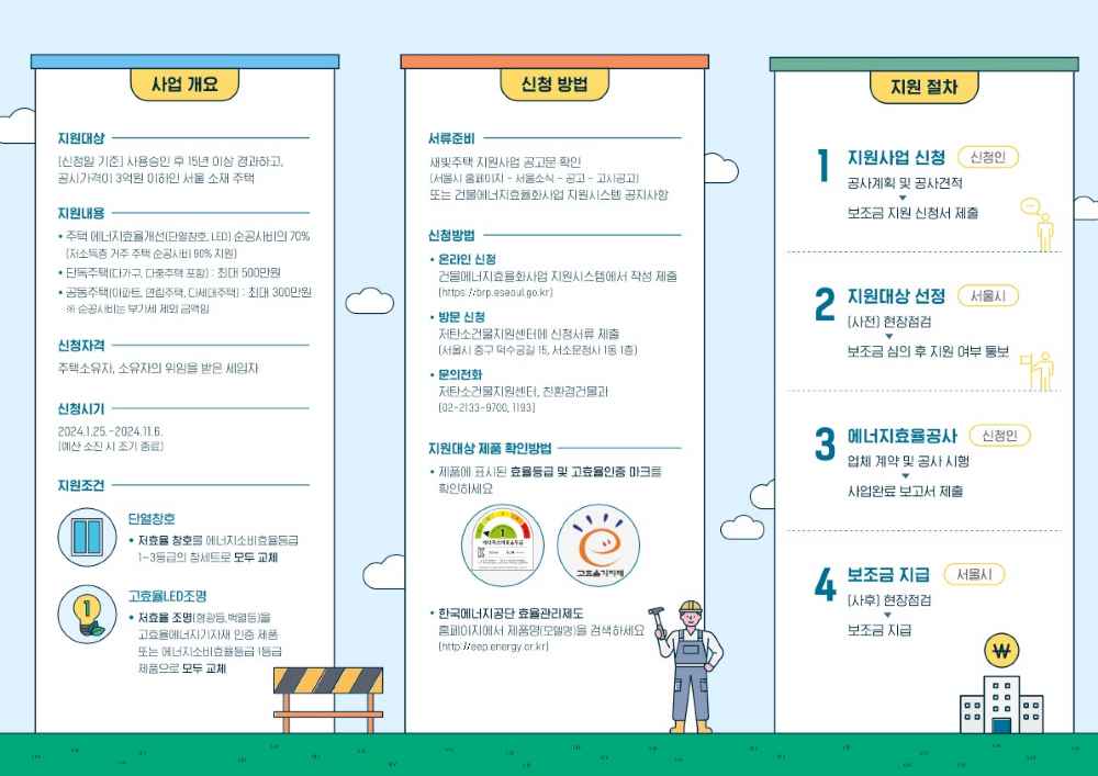 기타 문의사항은 저탄소건물지원센터(02 - 2133 - 9700), 친환경건물과(02 - 133 -1193)으로 연락하시고 선착순이니 빠르게 정보 알아보시고 서둘러 신청하시가 바랍니다.