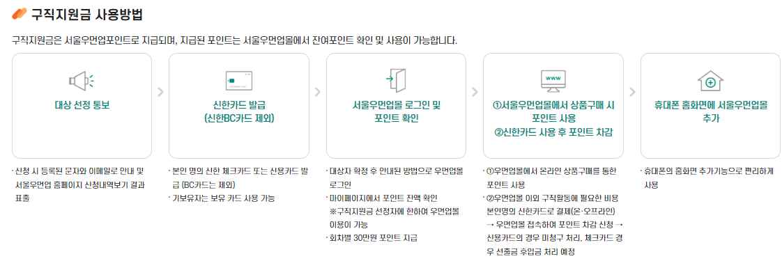 - (구직지원금) 월 30만 원씩 3개월간, 최대 90만 원