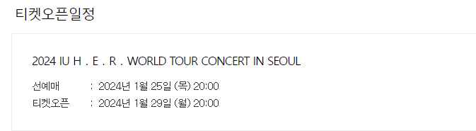 아이유 서울 콘서트 일정 및 예매