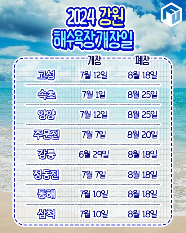 4. 2024 강원도 해수욕장 개장 일정